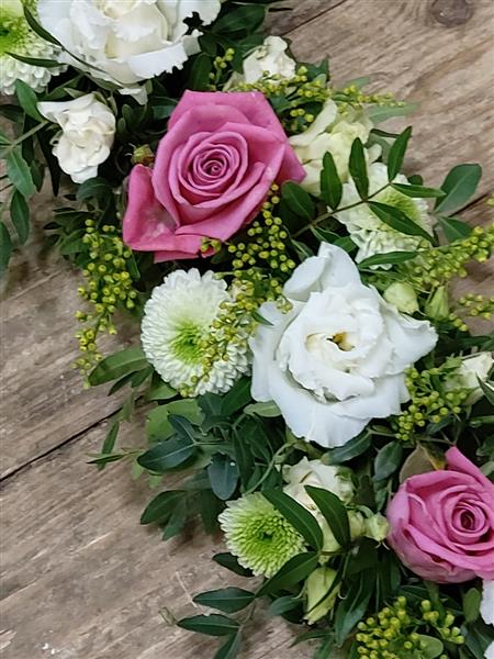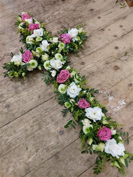 A Cross tribute in your choice of colours. Designer chooses flowers on the day, selected from high quality seasonal blooms.