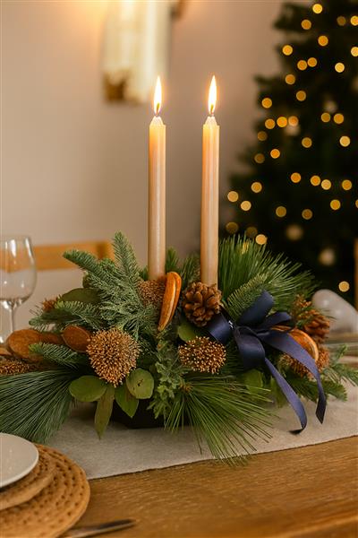 Infused with festive elegance and Highland spirit — featuring dried oranges, Scottish thistle, and candlelit greenery to warm every winter table.