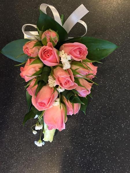 PIN INCLUDED ( LADIES CORSAGE MADE UP WITH PINK SPRAY ROSES COLOURS CAN BE CHANGED )