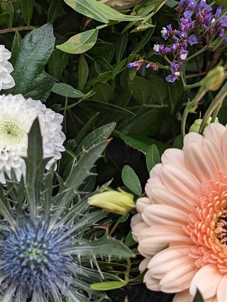 All our designs are freshly made, using the freshest, seasonal flowers. The flowers and foliage used will be similar in colour and texture to the image shown. These pictures and descriptions are therefore a reliable guide rather than an exact representation.